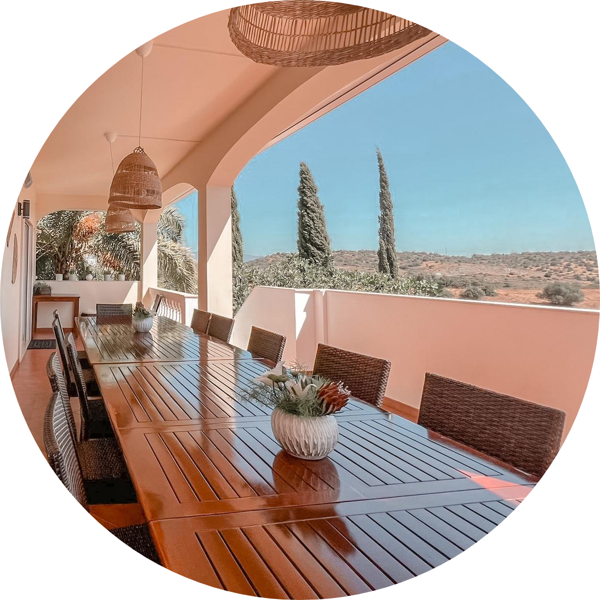 Hidden in the hills near Portimão, our private retreat estate features 10 elegant guest rooms, each with an en-suite bathroom. Just 5 km from the beaches and a 40-minute drive from Faro Airport, it’s the perfect setting for a week of relaxation and rejuvenation in the sunshine.